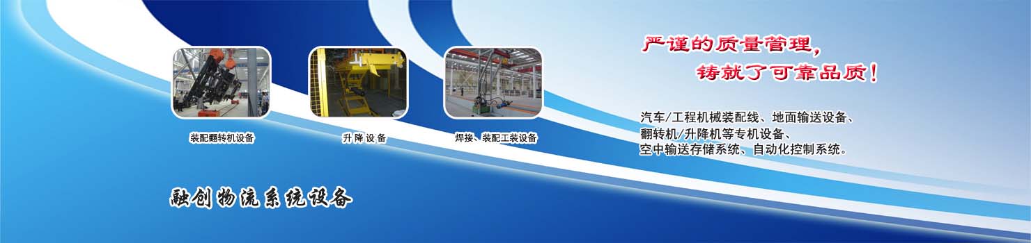 無錫市融創(chuàng)物流系統(tǒng)設(shè)備有限公司專業(yè)從事物流輸送設(shè)備、各類裝配流水線設(shè)備、各類生產(chǎn)非標專機設(shè)備和自動化控制系統(tǒng)的專業(yè)生產(chǎn)企業(yè)。廣泛應(yīng)用于轎車、卡車、客車、各類工程機械、發(fā)動機、車橋、農(nóng)業(yè)機械、郵政、家電等行業(yè) ...... >> more >>